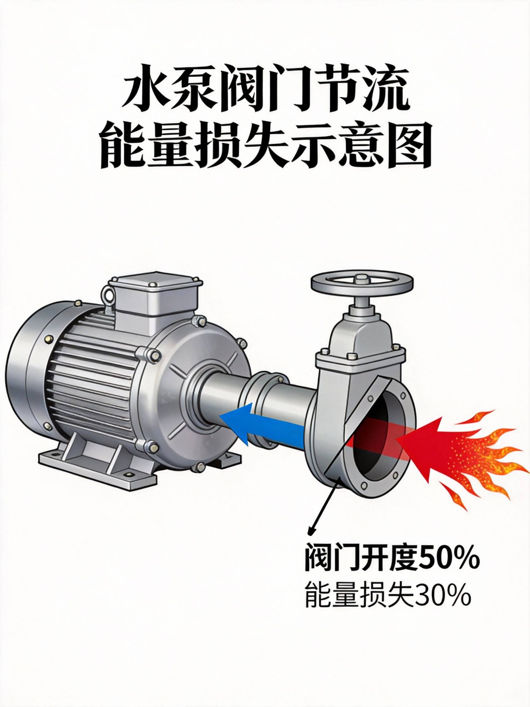 在实际运行中,操作工通过关小阀门来调节流量,这相当于让水泵不断对抗自己制造的节流阻力。