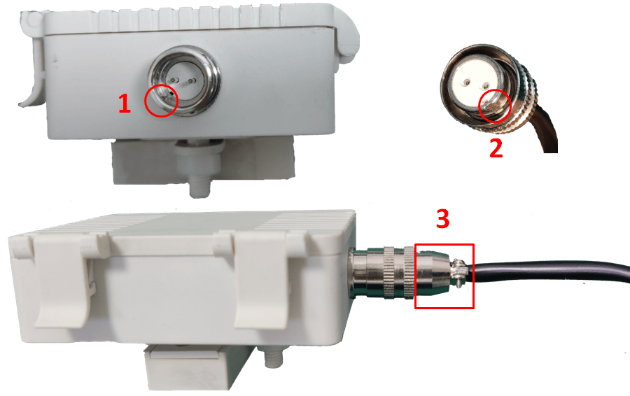 接线电源线:插头插入插座,旋转到插座的筋条(如下图1处)刚刚好插头的槽(如下图2处)对准后,推插头的尾部(如下图3处)听到咔声表示已经对接成功。