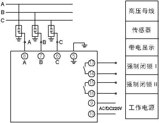 注意:如果只需要一路高压带电显示的功能,则只有闭锁Ⅰ有效!
