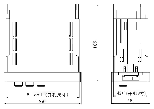 嵌入式安装,在开关柜面板上开92mm×44mm矩形孔将其装入,用安装架固定在面板上即可,产品外形尺寸见下图 71。