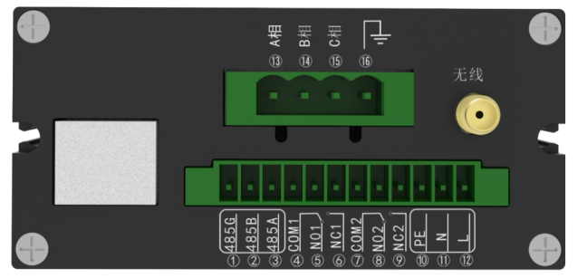 485G | 485B | 485A | COM1 | NO1 | NC1 | COM2 | NO2 | NC2 | PE | N | L |