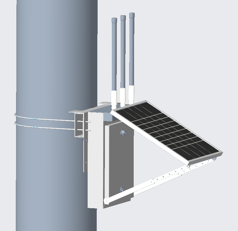 用安装支架卡在铁塔横杆上,并用不锈钢抱箍固定安装支架。
