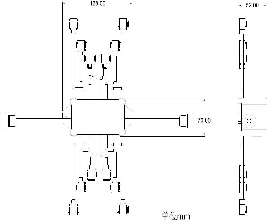 4.1 安装尺寸图(单位:mm ),探头尺寸:28*19*14mm
