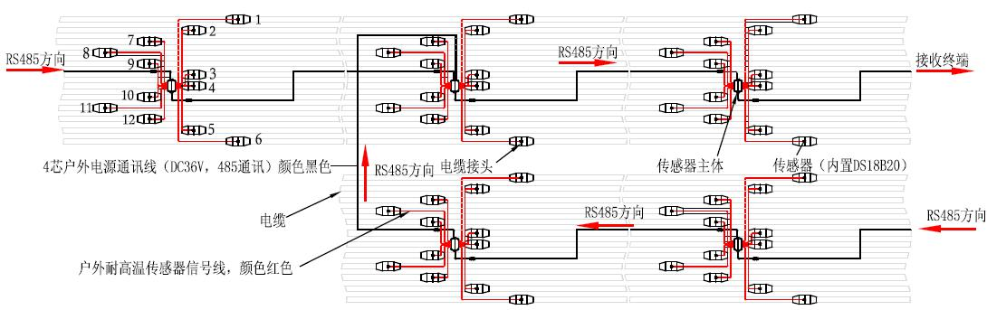 电缆沟是用以敷设和更换电力或电讯电缆设施的地下管道,也是被敷设电缆设施的围护结构,有矩形、圆形、拱形等管道结构形式。电缆接头是电缆绝缘的薄弱环节,电缆接头故障最容易导致电缆火灾事故,所以加强对电缆接头的监视和管理是电缆防火的重要环节,为解决电缆接头的发热问题,我公司专门开发了针对地缆沟电缆接头测温的在线监测系统,能及时发现电缆接头的温升现象,避免电缆接头在运行中着火。