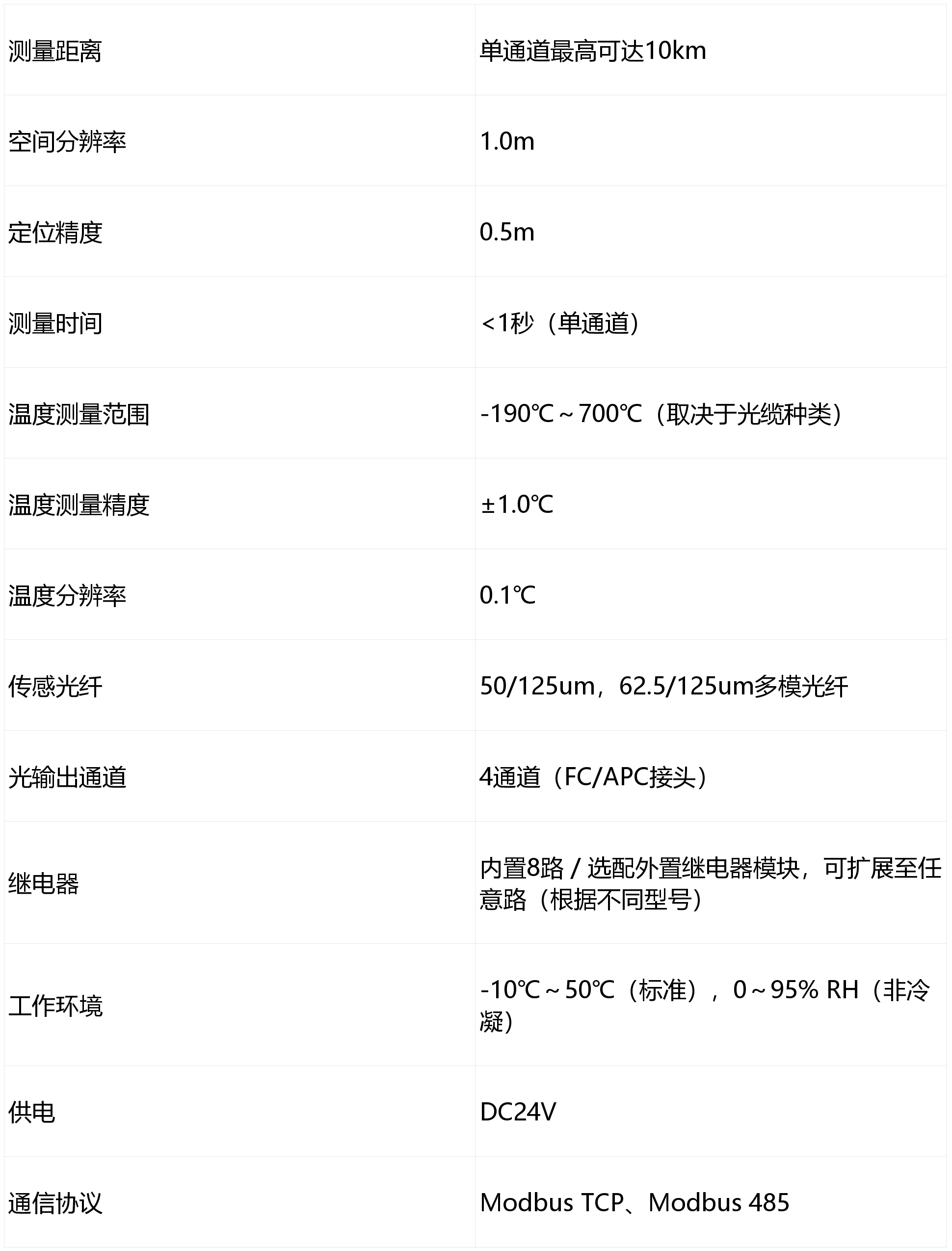 系统使用光纤作为信号传输和测量的媒介本身具有抗干扰、本征防爆和抗化学腐蚀等优异性能,适合于化工、高压、核电等危险或高干扰的场合。