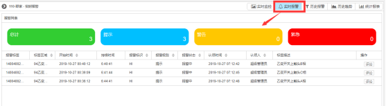 实时报警:显示该站点的实时报警页面,显示该站点所有单元设备下的传感器当前报警监控信息。