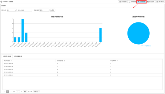 时段统计数据:显示统计时间段内的报警统计列表