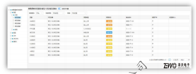 遥测量告警:选择需配置的配电回路及该配电回路所需报警的变量类型,可 配置配电系统遥测量的实时善警规则,以及配置各报警类型的报警值,报警级别, 报警信息。