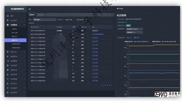 现场发生停电、过流、短路跳闸、电压暂升/暂降等电能质量事件时,在平 台软件中可召唤装置中的故障录波曲线进行故障分析。