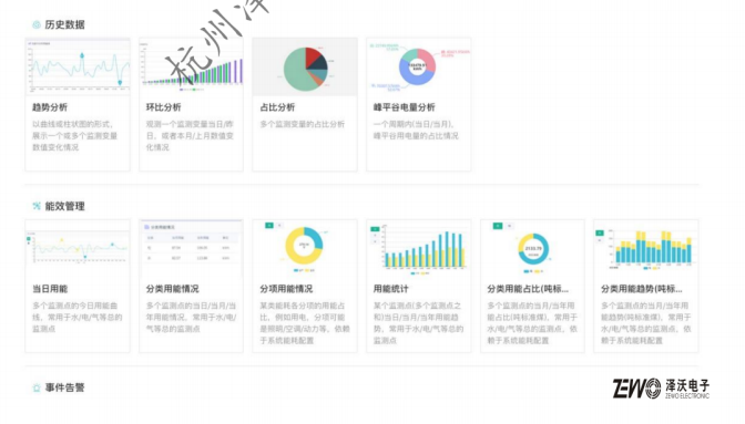 泽沃电子配电安全隐患监管及消灾智慧平台,系通过物联网技术,基于智能 感知装置,对电气运行状况,尤其是可能引发火灾的主要现象,如导线温度、电 弧、电流突变、电压暂降/暂升、漏电电流、谐波、负载不平衡等,进行实时精 准数据采集与统计分析,及时显现电气线路和用电设备存在的安全隐患(如线缆 过载、温度异常、电弧故障、短路故障、漏电故障、电气设备用电异常等),快 速预警,准确推送解决预案,及时消除用电安全隐患,减少严重故障发生概率, 缩短故障处理时间,提高用电可靠性。在极端火灾发生时,自动切断电源并启动 智能灭火装置,将火灾消灭在“早”、“小”阶段,降低损失,增加人员和设备安 全性,降低维修成本。