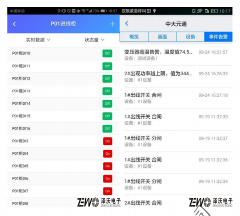 可以查看设备的所有实时运行数据,模拟量和状态量分类显示,更新周期达 到秒级。