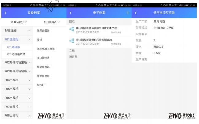 APP 可查询到变电站的各类电子档案,如图纸、测试报告、检测报告、巡检 报告、检修记录等等。信息分类存储,可在线查看。