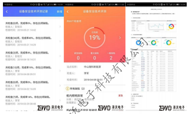 APP 内置各类电气设备的安全检查项,运维人员在巡检时可按APP 上的检查 项进行巡检,并记录检查结果,APP 会自动给出安全评估指标,并给出改进建议。