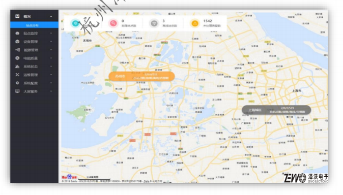 结合电子地图显示配电房的分布情况,并汇总配电房数量、变压器累计容量、