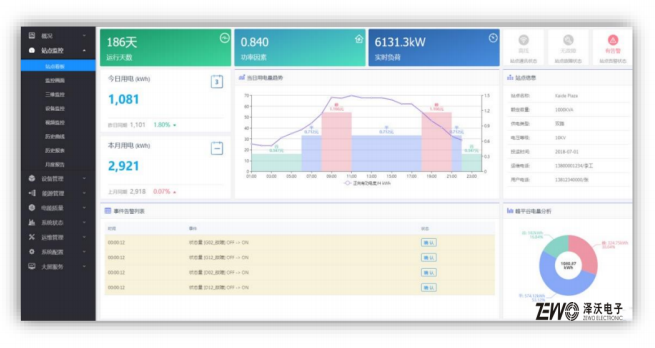 支持电网公司计费方式,每个月自动生成站点的电费报告,分析各项电费占 比及用电合理性。