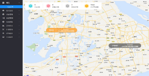 结合电子地图显示配电房的分布情况,并汇总配电房数量、变压器累计容量、累计运行容量等信息,点击图标可跳转至相关配电房详细信息。