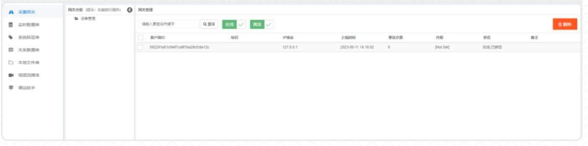 上线时间: 采集网关最后一次连至实时数据库的时间。 重连次数: 采集网关与实时数据库连接的累计次数。 分组: 若采集网关过多,可以对采集网关进行分组。