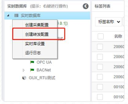 实时库转发配置: 将实时数据库内的实时数据进行转发,本章节将对 MODBUS等转发服务配置操作进行说明。