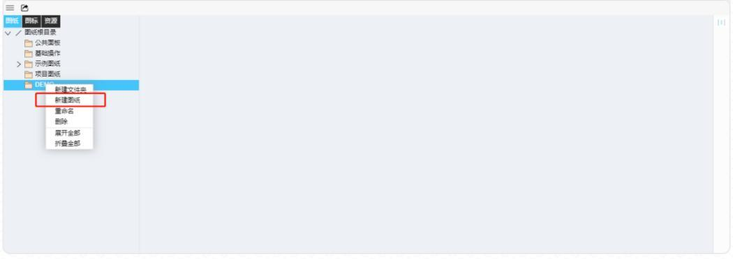 点击 “ 图纸根目录”或具体的文件夹目录,右键点击,选择“新建图纸”,并输 入图纸名称。