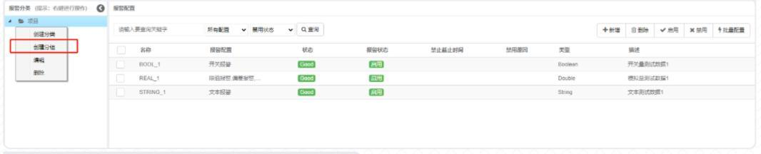 点击项目管理-报警配置-报警标签,右键选择创建分组。