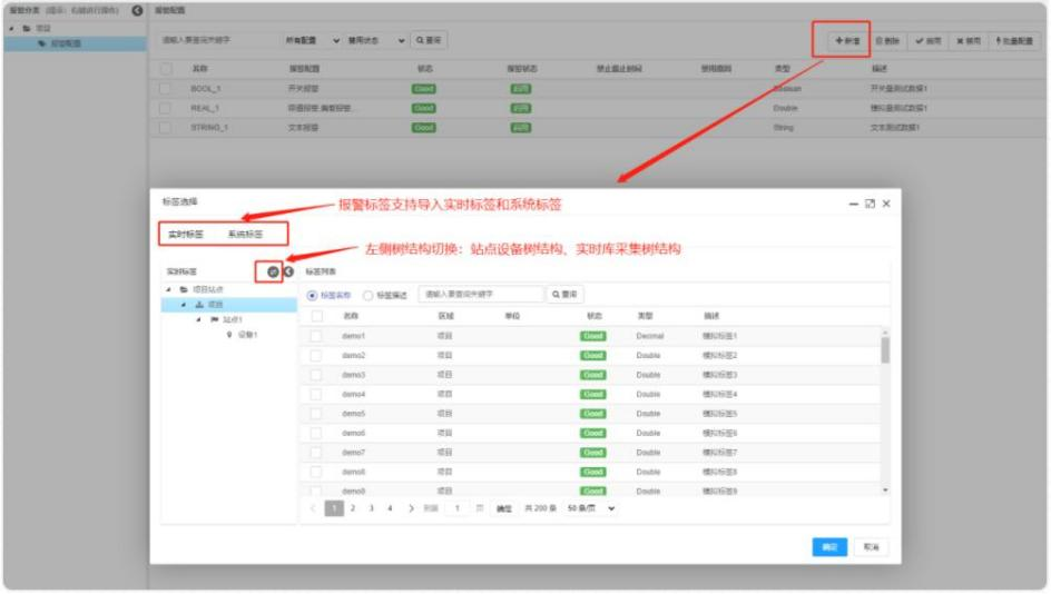 选择创建的报警分组,点击新增,将需要报警的标签选中导入。