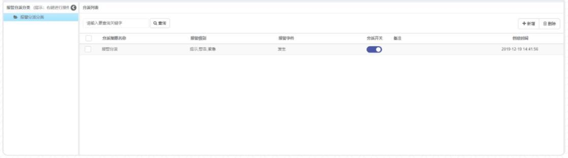 报警分派配置: 配置报警触发后报警信息分派渠道及分派对象。