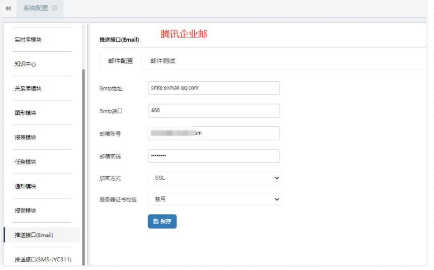 进入系统-系统配置,将推送接 口 (E-mial)里将相应的配置项填写:
